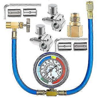 R134a Refrigerator Freon Recharge Hose Kit, R134a Ac Refrigerant Charging Hose Gauge, Piercing Valv