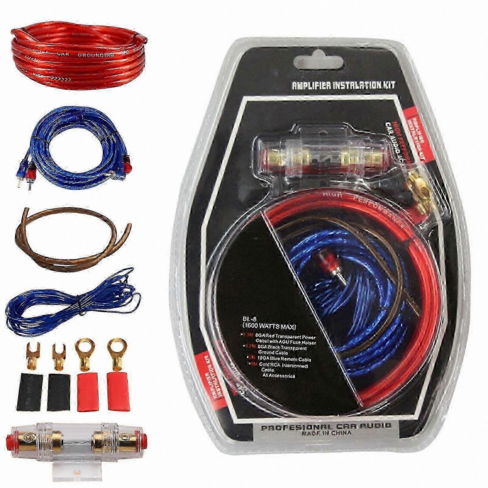 8 Gauge Subwoofer Wiring Kit for Car Audio Systems with RCA Cables and Amplifier Installation Components