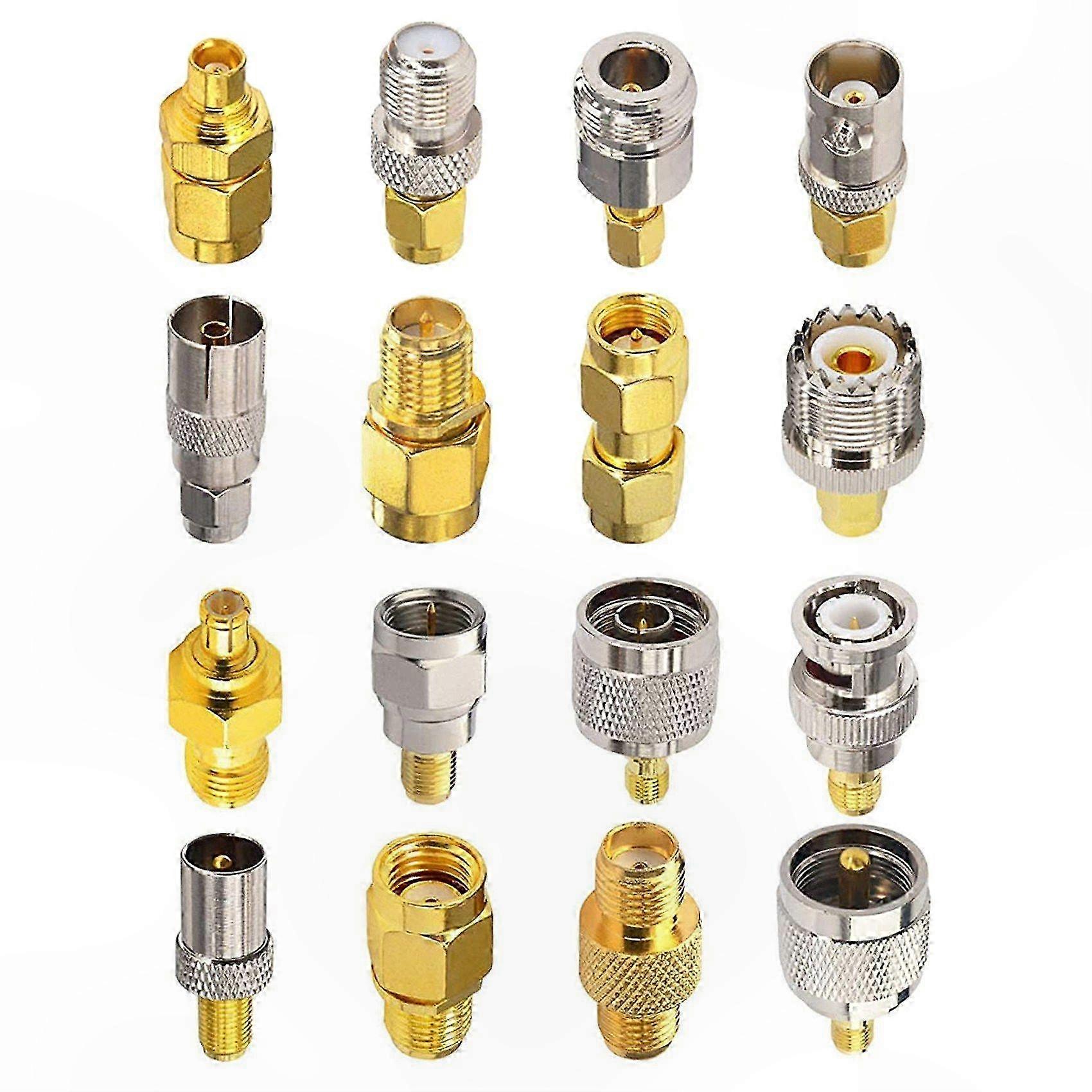 SMA Connector Adapter Kit - 16 Types Including MCX, TV, F, BNC, UHF, RP-SMA - Straight Nickel Gold Plated