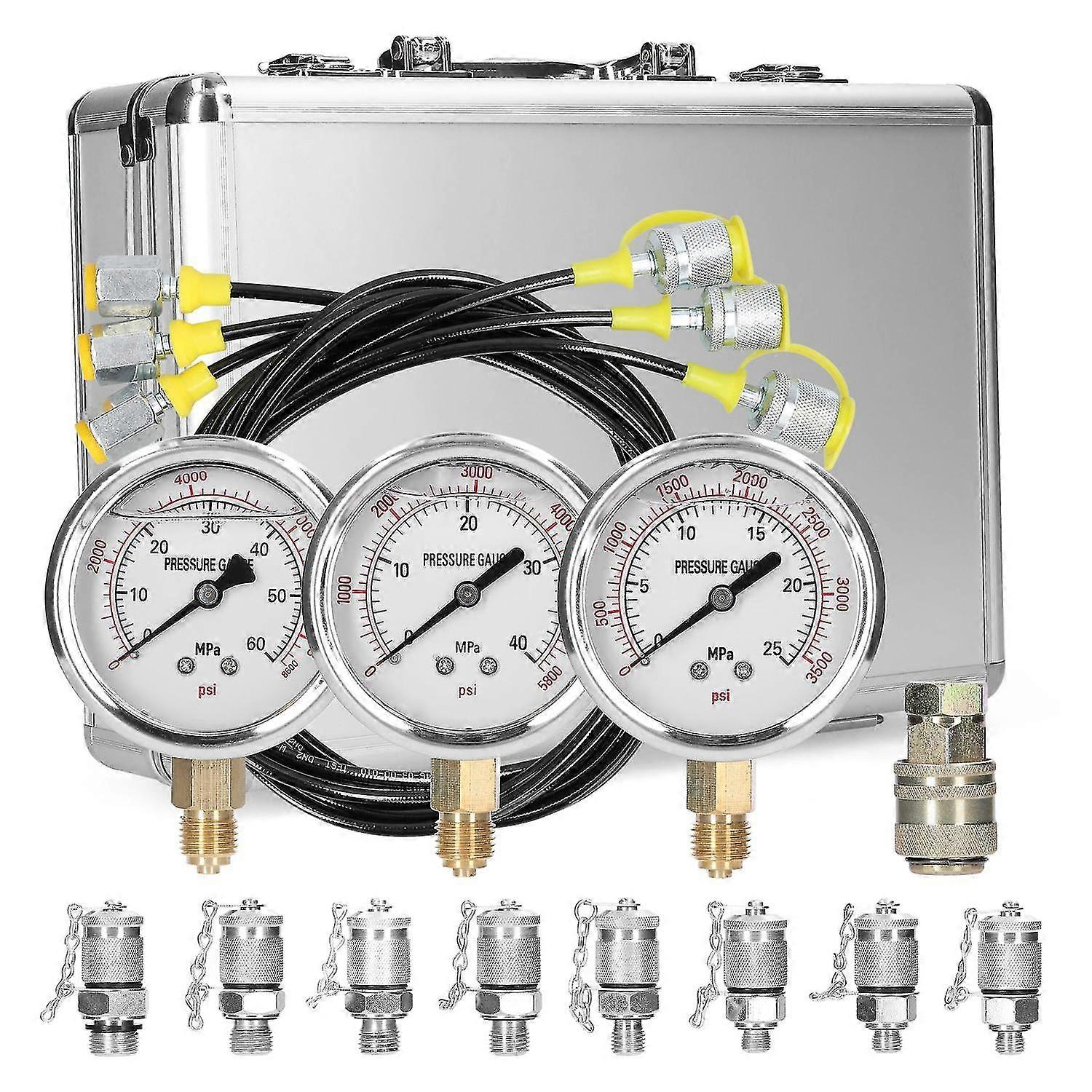 Hydraulic Pressure Gauge Kit Excavator Hydraulic Pressure Meauring Device with 9 Couplings 3 Pressur 26s