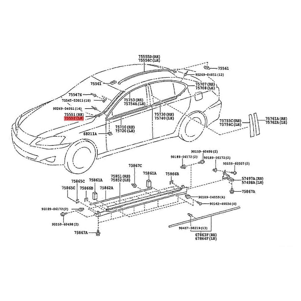 1Pair Windshield Pillar Molding with Clips Kit for is IS200D IS250 IS300 IS350 2006-2013 75552-53020 75551-53020