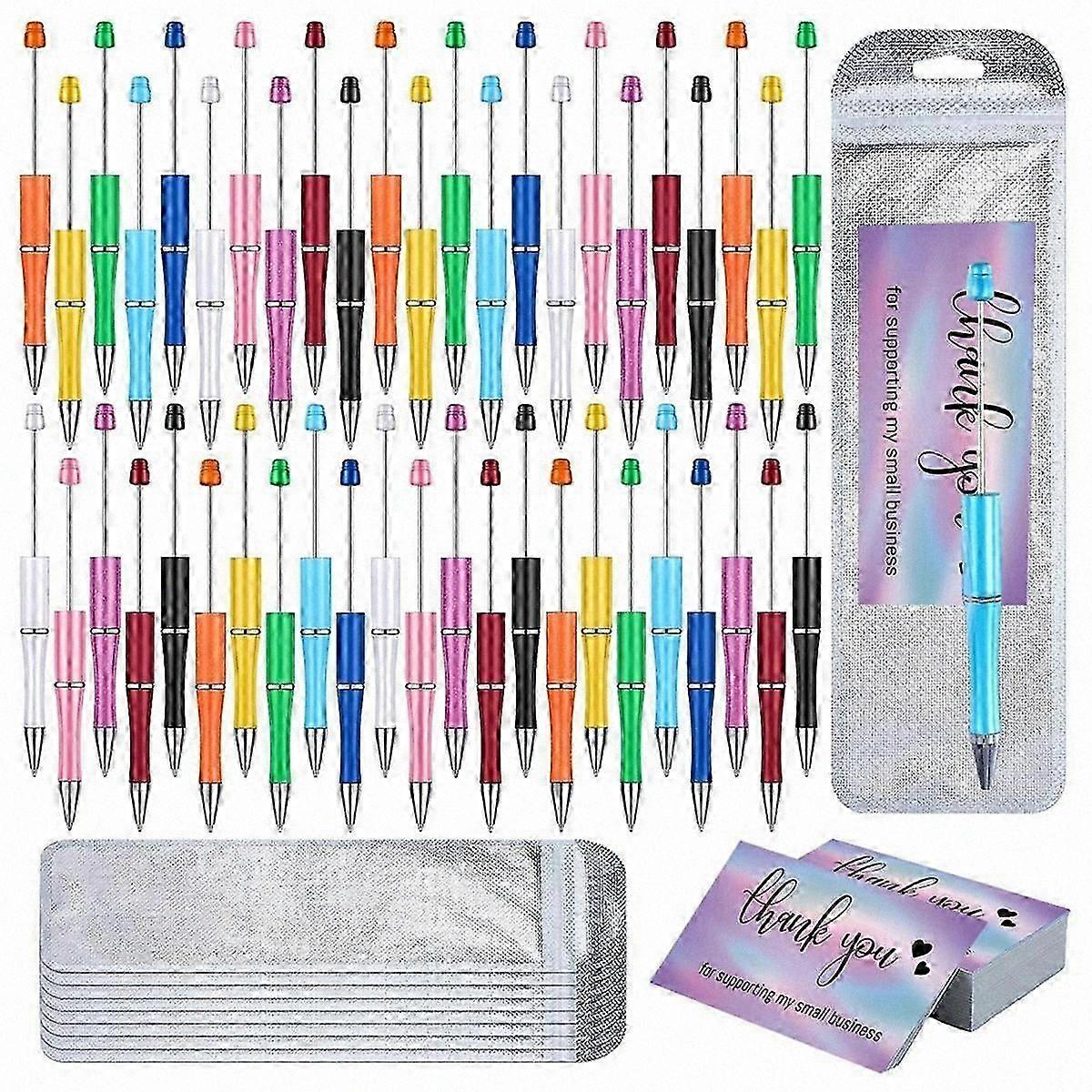 150 Pieces Beadable Pens Kit,Colors Plastic Beaded Ballpoint Pens Bulk Foil Thank You Cards for Office School