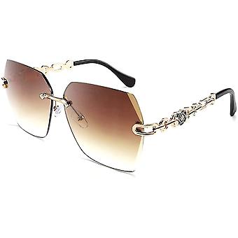 Classic Rimless Sunglasses Women Metal Frame Diamond Cutting Lens Sun Glasses