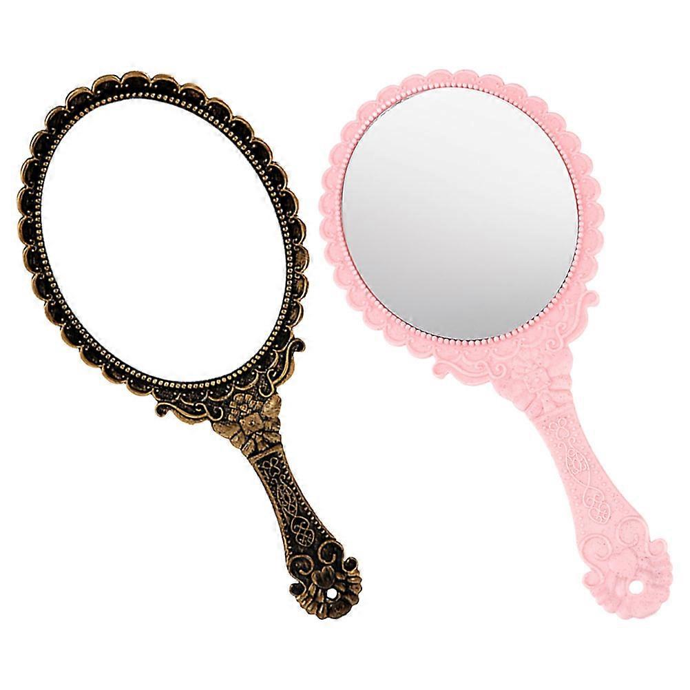 Classic Vintage Handheld Makeup Mirror 2Pcs Retro Design For Women Assorted Color Glass And ABS