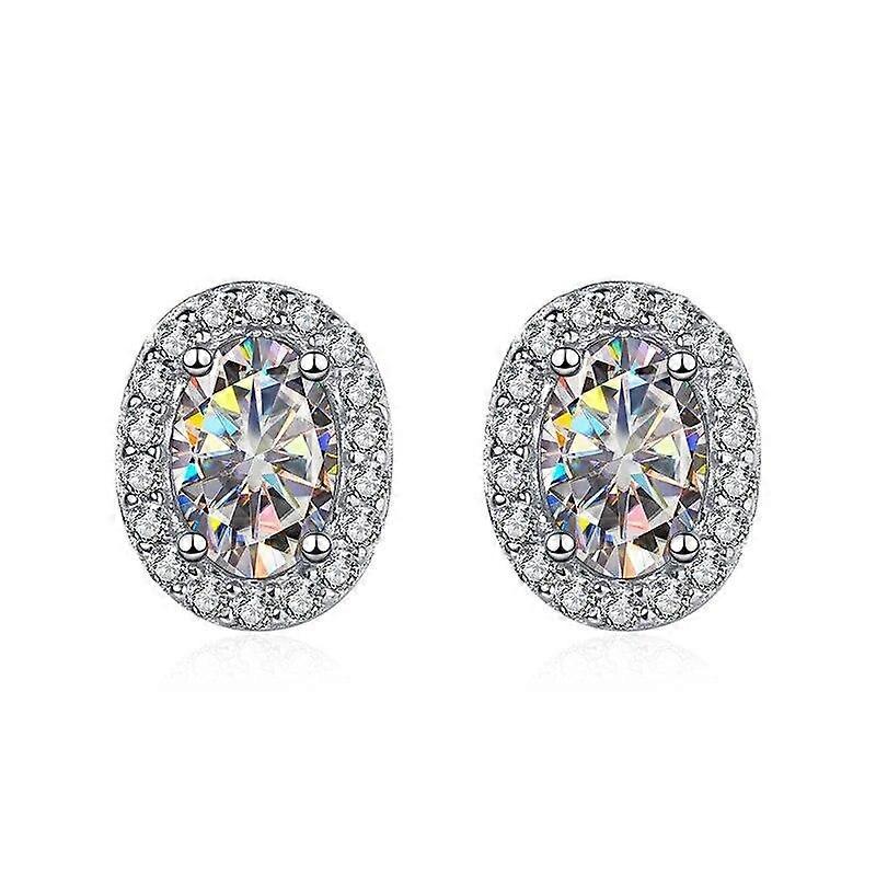 Classic Design 1 Carat Moissanite Stud Earrings for Female S925 Silver Oval Shape Fine Jewelry for Party Anniversary