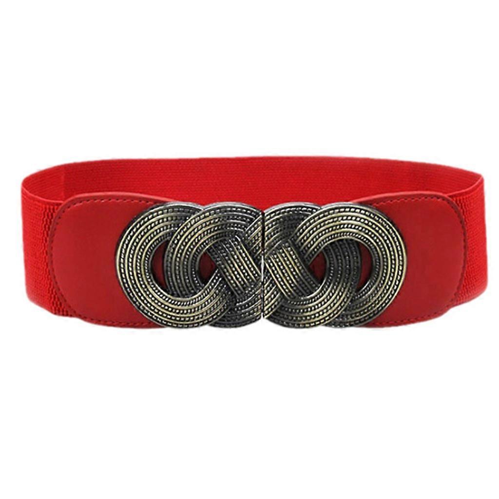 Classical Retro Punk Women Belts Bronze Buckle Simple Wide Waist Belt Casual Fashion All-Match Jeans Dresses Waistband 95cm Red