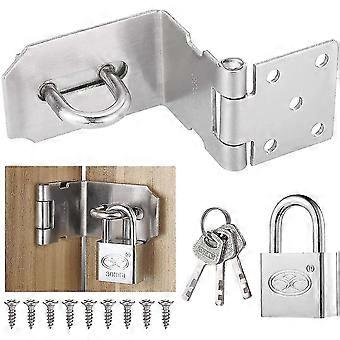 90 Degree Padlock Hasp With Padlock And Screws, Stainless Steel Door Latch Hasp, Undeformable Right Angle Padlock Hasp For Wooden Door, Garden, Window
