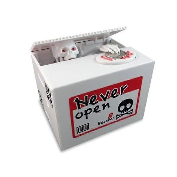 Piggy bank skeleton thief hidden white kitty kids unusual funny