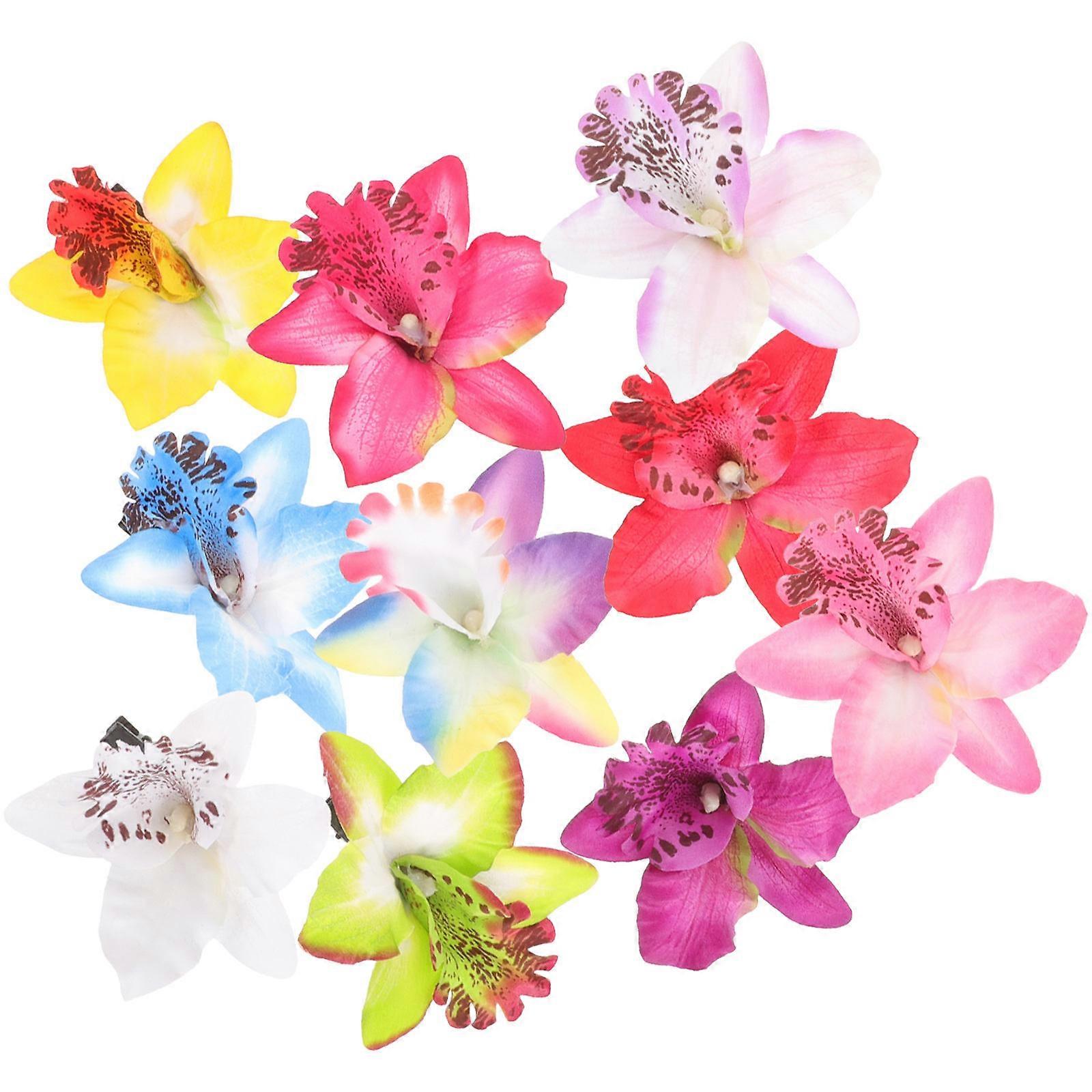 Hair Flowers Clips Orchid Flower Hair Clips Girls Beach 8x7cm Fabric Safe to Remove 10Pcs