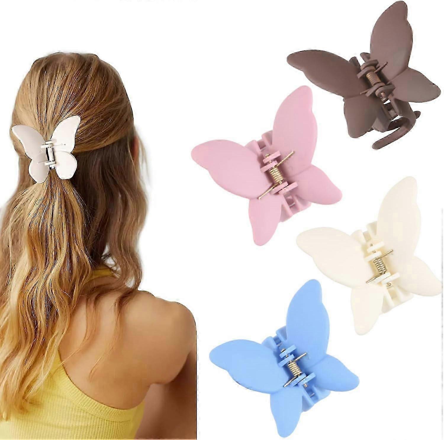 Butterfly Hair Claw Clips Non-Slip Strong Hold for Medium Thick Hair 4 Colors Fashion Hair Clip for Girls and Women (Brown,Pink,White,Blue)