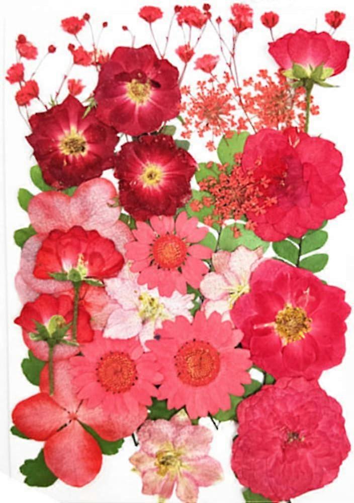 Welcome to our store The package includes 8 kinds of dried flowers, red hydrangeas, red gypsum flowers, crystal red chrysanthemum, red snow pearl flower, Adiantum, Chinese rose, red rose, dolphin flower. Dried flowers are made from natural, safe and eco-friendly flowers and leaves, with each piece slightly different in size and shape. Dried flowers are perfect for handmade bookmarks. handmade, scrapbooking, phone case, scrapbook frame decoration, candle making, DIY handmade jewelry. Natural dried flowers are a great material for DIY projects. You can send gifts to friends, express your heart and enhance each other's feelings. Natural dried flowers come in airtight packaging to protect the flower safe transportation. Colors may vary due to light!!!