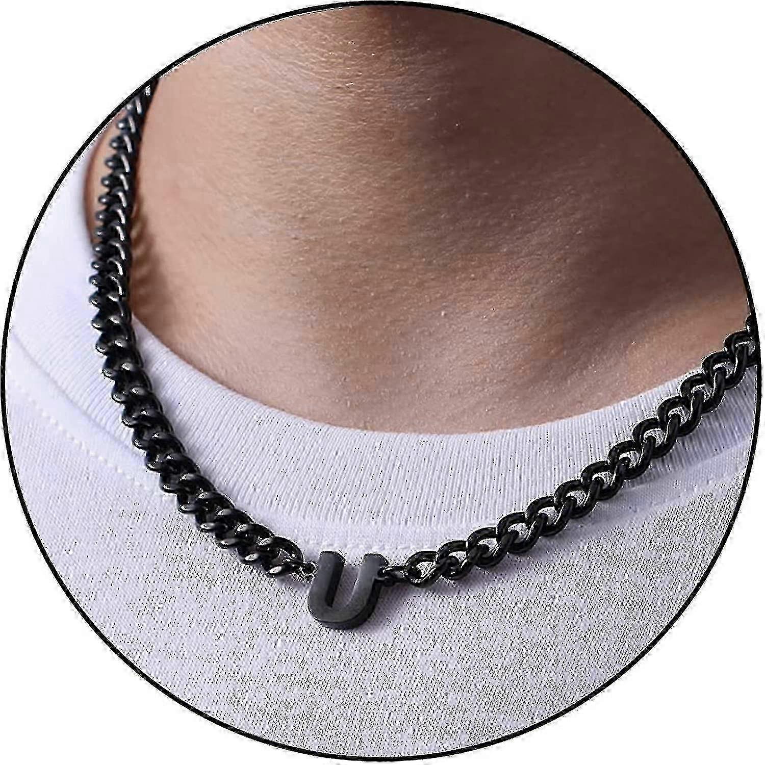 Stainless Steel Cuban Link Necklace for Initial A-Z Boys Men Women with Letter Pendant 6.5mm 18+2 Inches Jewelry Gift