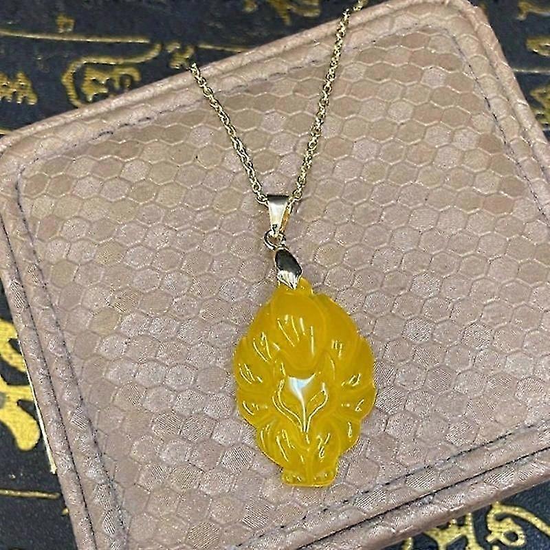 Nine-Tailed Fox Pendant Chain Necklace Unisex Chinese Animal Hand-Carved Fox Men Women Lucky Jewelry Gift