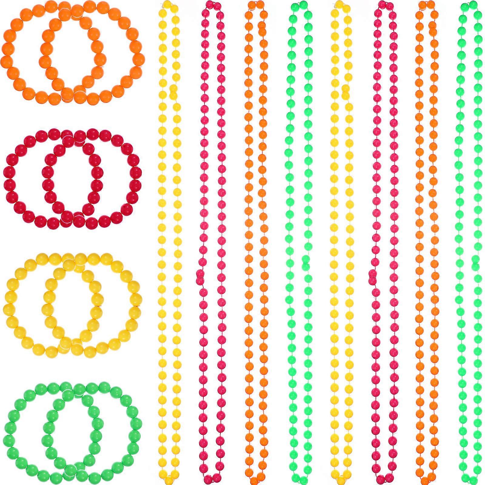 The item is a set of neon beads necklaces and bracelets. Specially designed for women and young girls to wear. The neon beads costume accessories feature the bright colors, which can make you more attractive in the crowd. Suitable for retro theme dress up, dance party, dress costume, neon party, theme party etc. Feature -Color:Assorted Color -Material: Plastic. -Size: 40.00X0.60X0.60cm/15.72X0.24X0.24inches. -Neon beads chains: With design, including necklaces and bracelets, neon color let them more stunning. -Vintage style: The neon beads costume accessories feature the bright colors, which can make you more attractive in the crowd. -Party photo props: You can also treat them as photo props to taking some funny and interesting pictures with your friends! -Various occasions: Perfect for daily wear, music party, neon party, carnival party, theme party, seaside, street, etc. -Nice gifts: The neon necklaces and bracelets will be nice gifts for girls and women, bringing them a good mood. Package list: 16 x Necklaces 16 x Bracelets