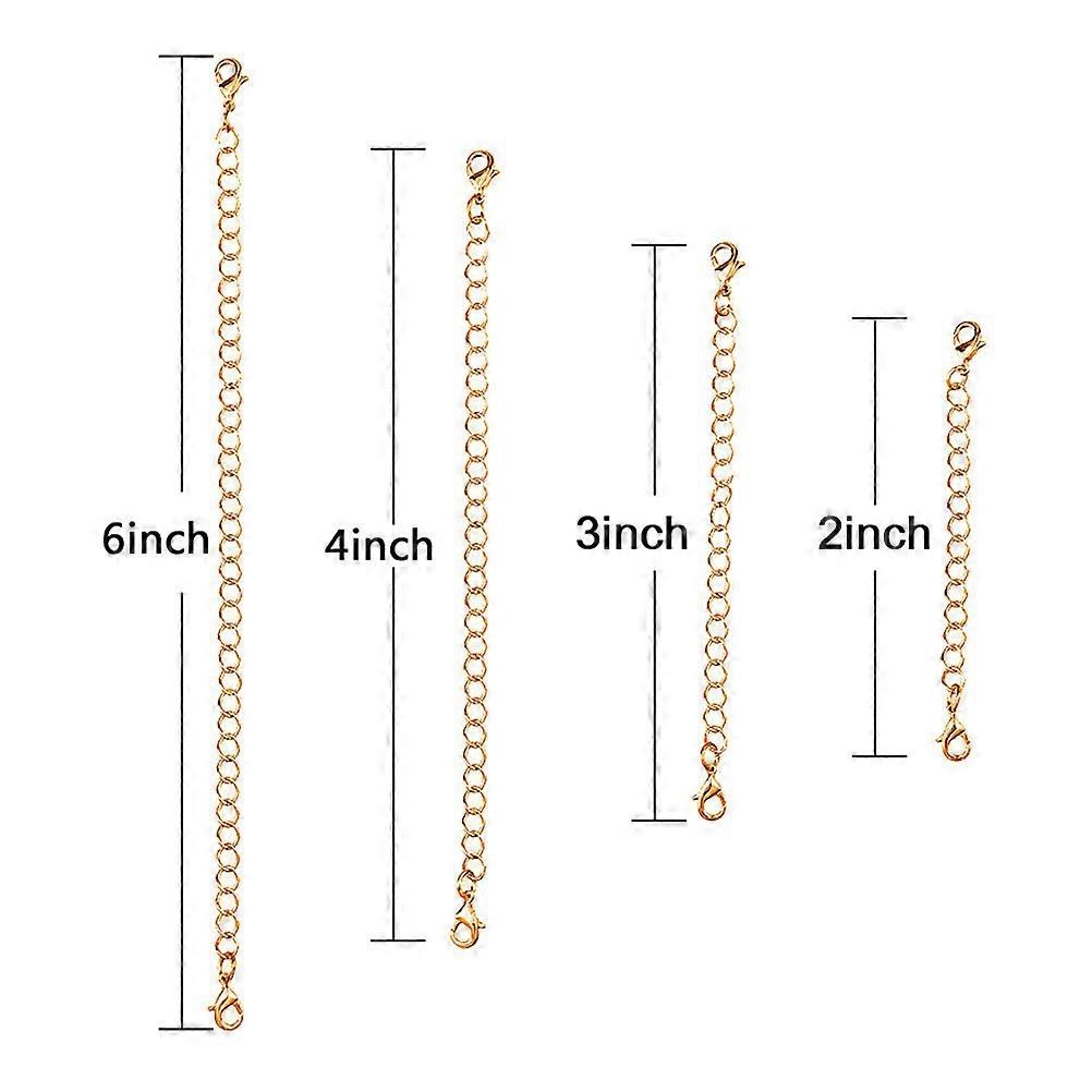 The item is a pack of 8pcs lobster claw clasps with four different size. It can be used to add the length of necklaces, bracelet or anklets. Flexible to put on and take off. You deserve to have this necessary chain extender. Features - ColorAssorted Color - Material: Stainless Steel. - Length: 2 inch, 3 inch, 4 inch, 6 inch. - Classic lobster claw clasps, easy to put on or take off; Convenient to use. - Easily add the length of your jewelry. - Multiple sizes meet your different needs. - Add the length of your favorite necklaces, bracelets or anklets. - Simply clip the lobster claw onto your necklace. Package list: 8 * Gold Silver Stainless Steel Necklace Bracelet Extender Chain Set