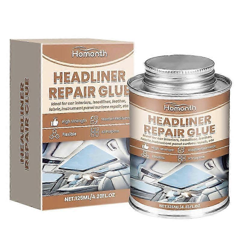 Features:<br> 125ml Versatile Adhesive: This 125ml car headliner adhesive is perfect for quick repairs on automotive interiors, ensuring a strong bond for headliners, door panels, and dashboards.<br> Easy To Use Formula: Our Strong Adhesive is designed for effortless application. Simply apply the glue, press the surfaces together, and enjoy a durable hold without the mess.<br> Flexible And Durable: The flexible car roof liner adhesive adapts to various materials, making it suitable for fabric, leather, and other automotive interior surfaces for lasting repairs.<br> Quick Repair Solution: With our car roof liner quick repair glue, you can tackle unexpected interior issues swiftly, restoring your vehicle's aesthetic without the hassle of complicated procedures.<br> Ideal For Various Applications: This adhesive is specifically formulated for automotive interiors, making it an excellent choice for repairing headliners, door panels, and dashboard facings with ease.<br> Specification:<br> Net Content: 125ml<br> Product Size: 8.4*5.2cm<br> Box Size: 8.7*5.5*5.5cm<br> Notes:<br> 1. The real color of the item may be slightly different from the pictures shown on website caused by many factors such as brightness of your monitor and light brightness.<br> 2. Please allow slight manual measurement deviation for the data.<br> Include: 1*125ml Car Headliner Adhesive