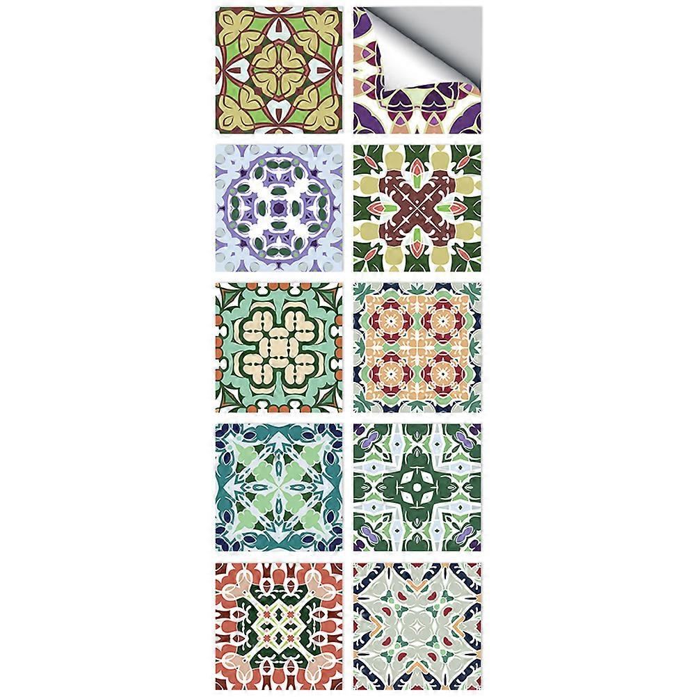 Adhesive Tiles Peel And Stick Classic Pattern Tile Stickers Waterproof Easy To Clean For Wall Decoration 10x10cm 10Pack