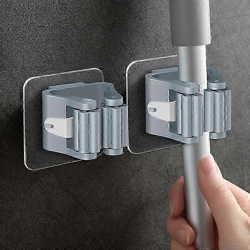 Pieces Self-Adhesive Wall Mounted Mop Holder Wall Mounted Broom Hanger No Drilling Broom Gripper Mop Holders Gray Broom Hanger for Bathroom Door