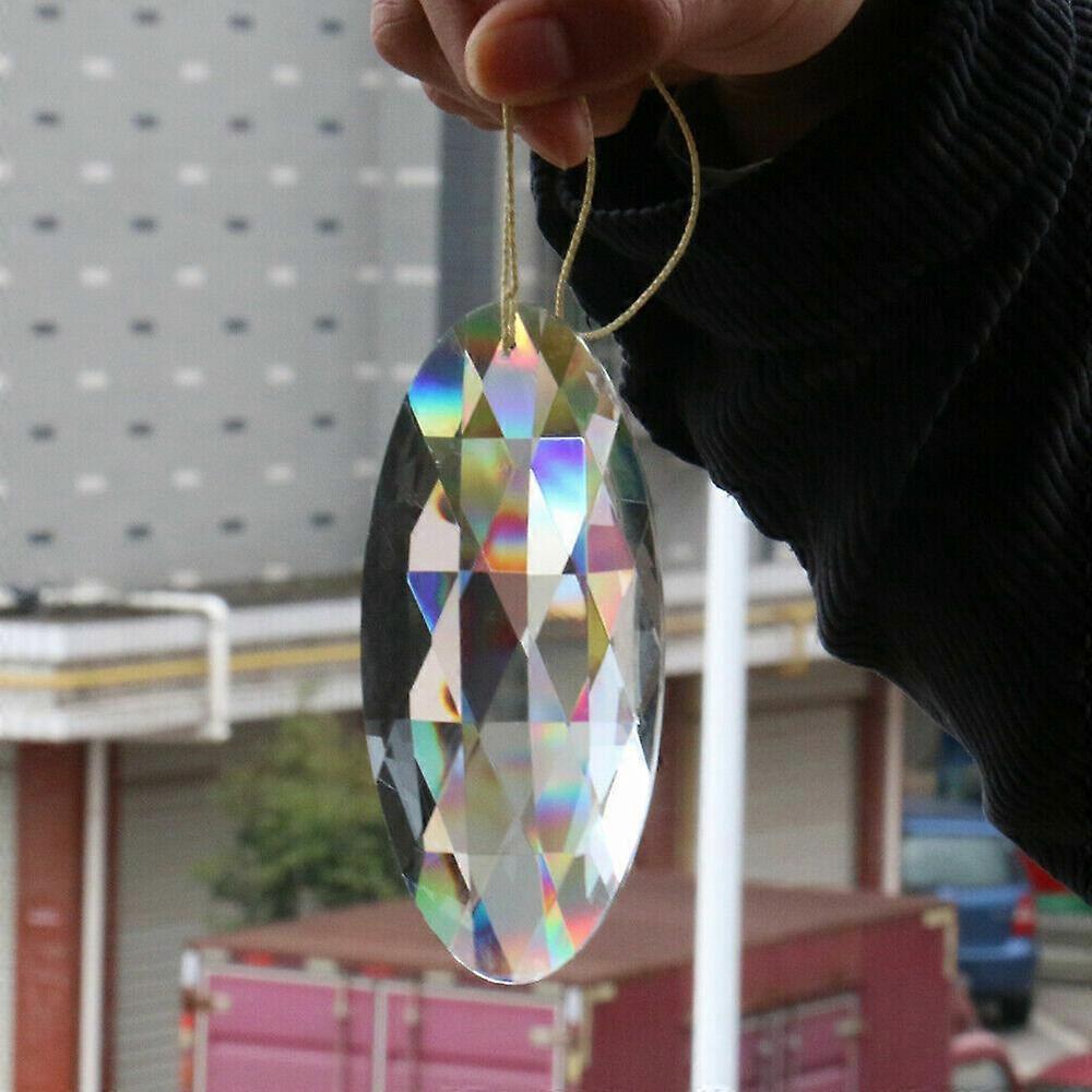 Cut Glass Crystal Prism Suncatcher Hanging 120mm Large Oval FengShui Chandelier