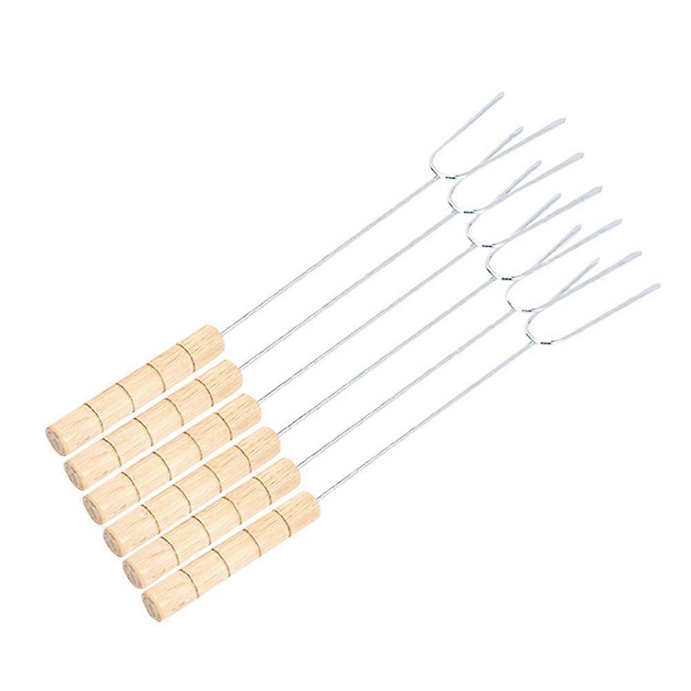 Elegant Stainless Steel BBQ Forks with Wood Handles Perfect for Parties and Outdoor Cooking Assorted Color 6Pcs