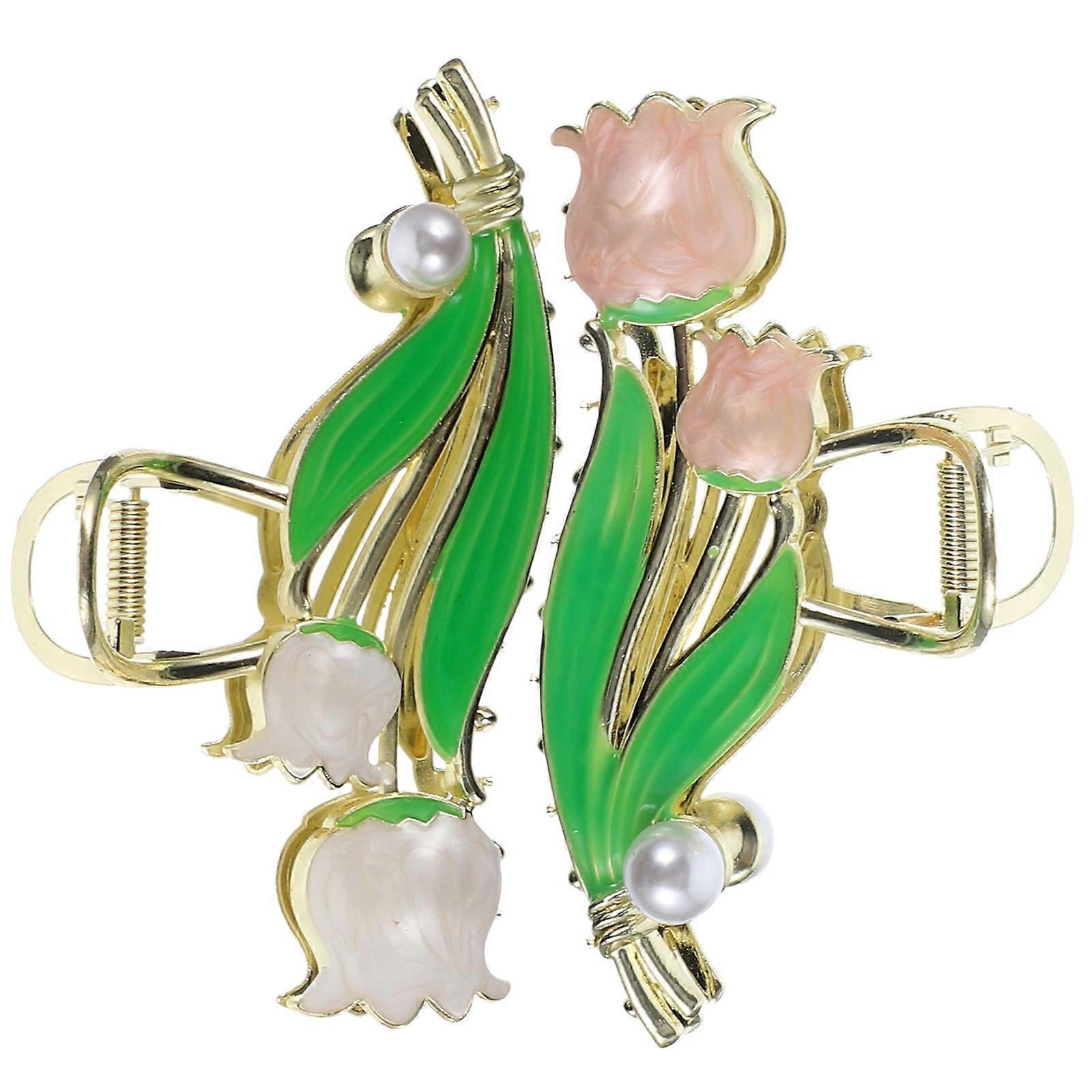Elegant 2PCS Tulip Hair Claws Metal Flower Clips Lightweight Durable for Thick Hair Daily Use Women Pink White