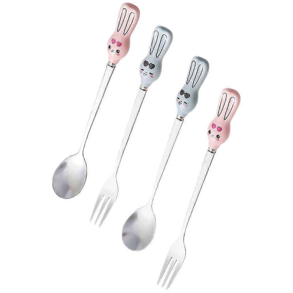 Chic 5 Sets Dessert Spoon Ceramic Handle Spoon Stainless Steel Fork Perfect Gift Giving Set Suitable For Home Restaurant Cafe Hotel 4Pcs/Set