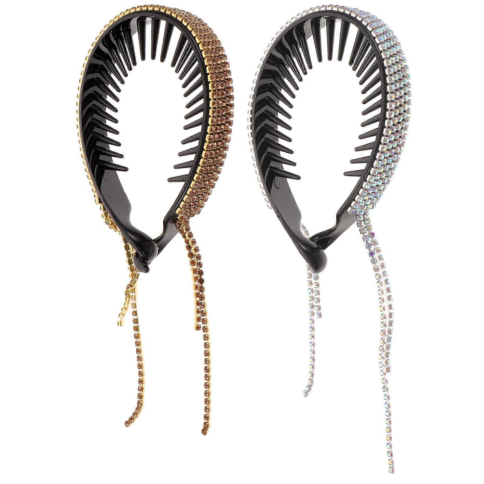 Rhinestone Hair Holder Elegant Ponytail Cuffs For Women's Hair Prom Graduation Ceremony 2Pcs
