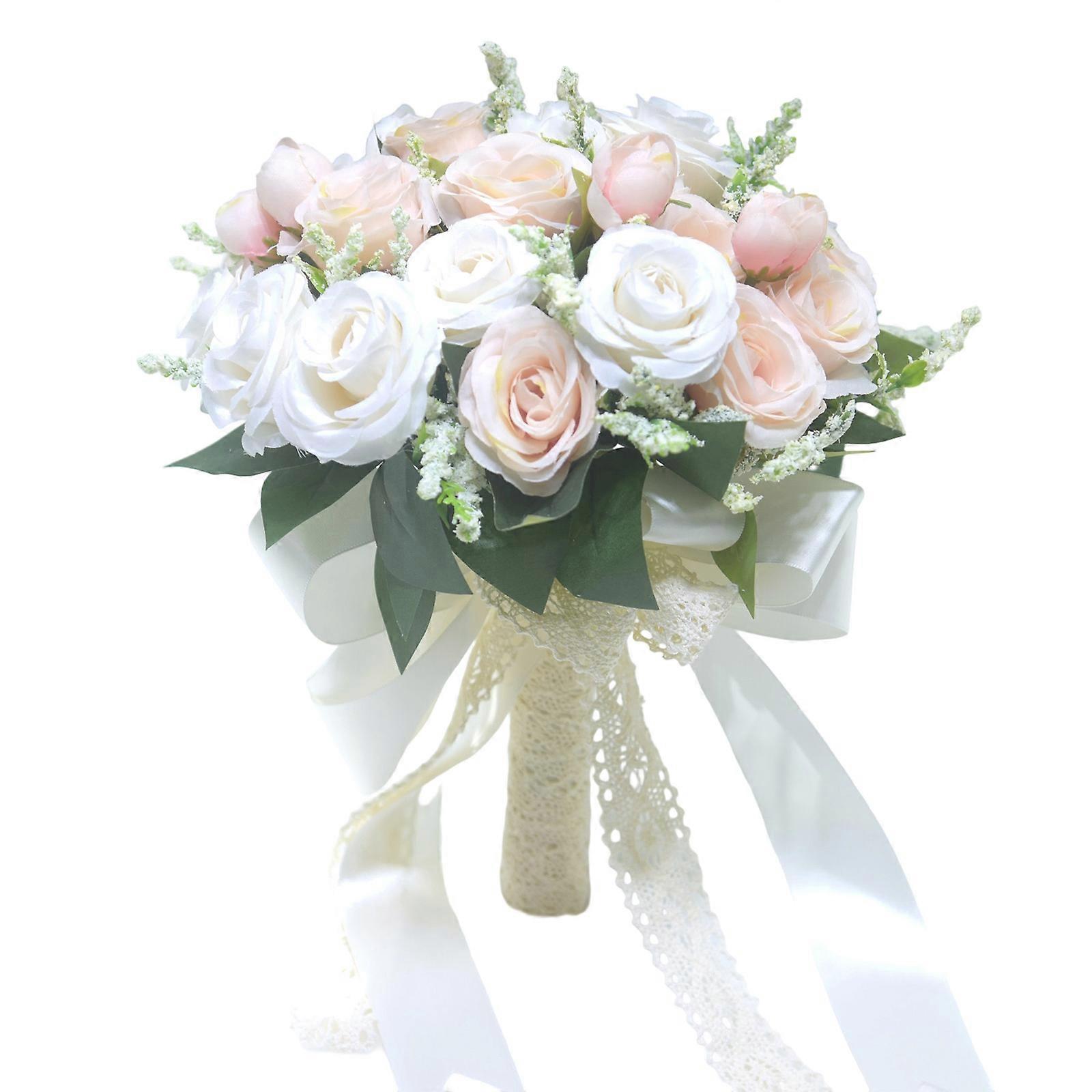Stylish Artificial Flower Wedding Bouquet For Bridal Photography Silk Flower Arrangement Wedding Ceremony Decoration champagne white