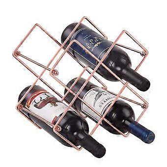 Sleek Wine Stand for Countertop, Freestanding Modern Geometric Rose Gold Metal, High Quality Iron Resistant to Scratching, Stable Durable