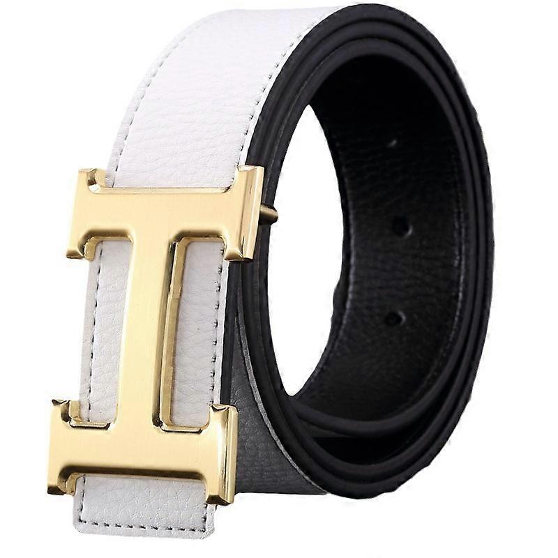 Sleek Leather Formal Belt with Automatic Buckle - H Gold & Flat White Style