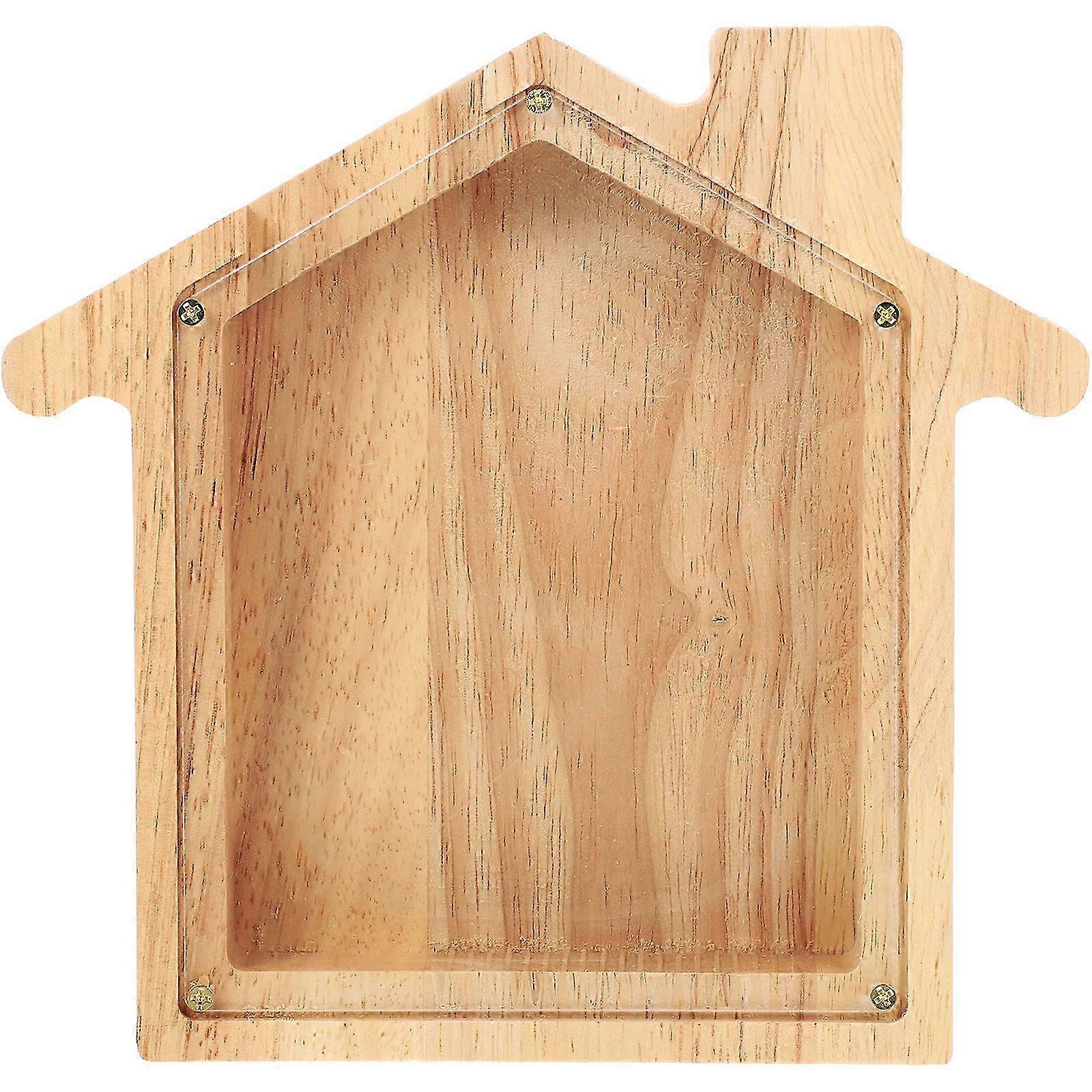 Stylish Wooden House-Shaped Coin Bank with Transparent Lid for Kids - 18x17.3x3cm
