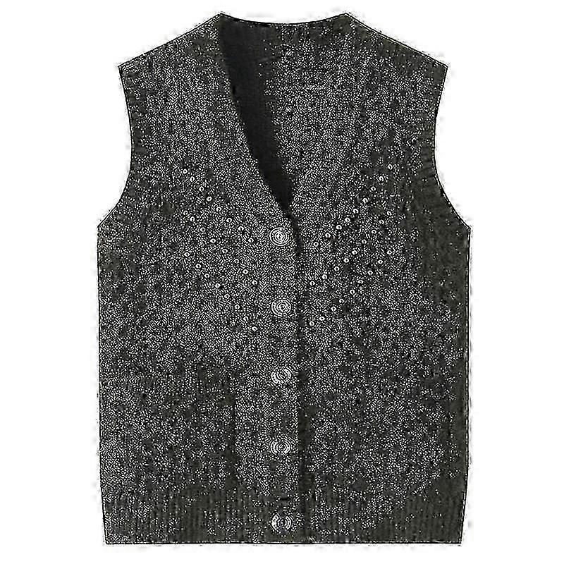 Elegant V-Neck Vest for Mature Women, Spring Autumn Waistcoat Coat