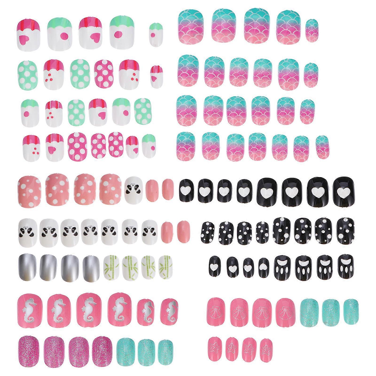 Short Fake Nails 120Pcs Full Cover Assorted Color For Kids Girls Nail Art Decoration Daily Dressing
