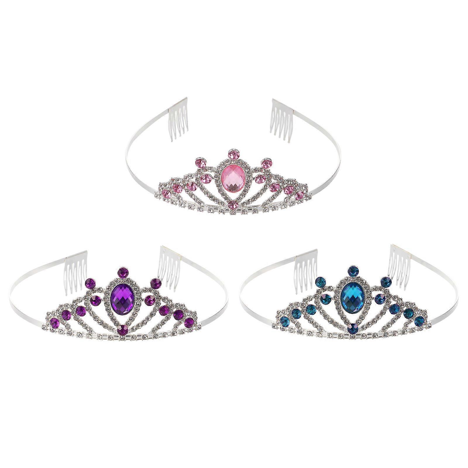 Alloy Crown Headband for Kids Girls 9Pcs Rhinestone Elegant Hair Accessories