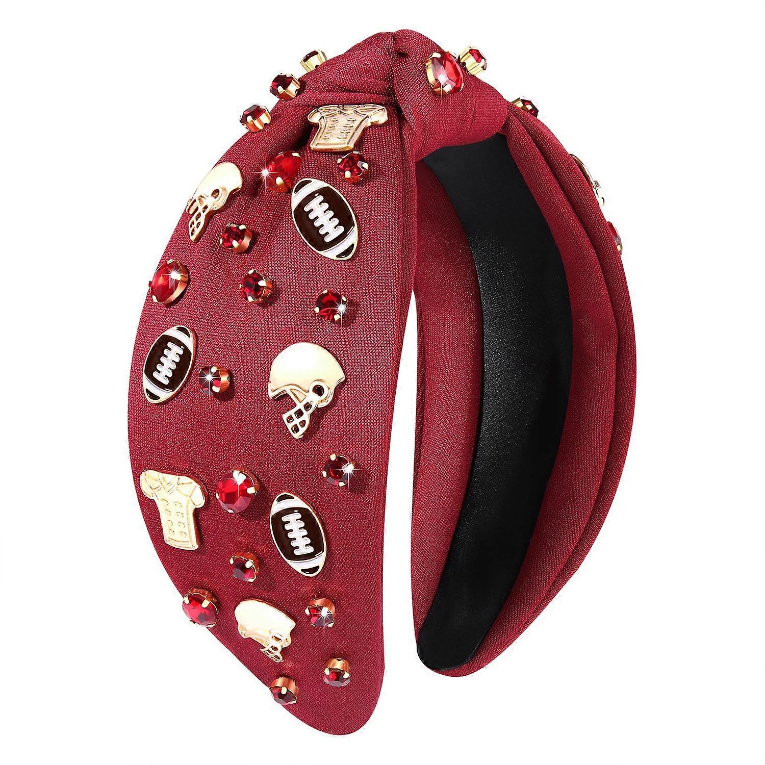 Football Knotted Headband for Women Sports White Pearl Rhinestone Crystal Jeweled Headpiece Fun Twist Knot Headband College Game Day Hair Accessories