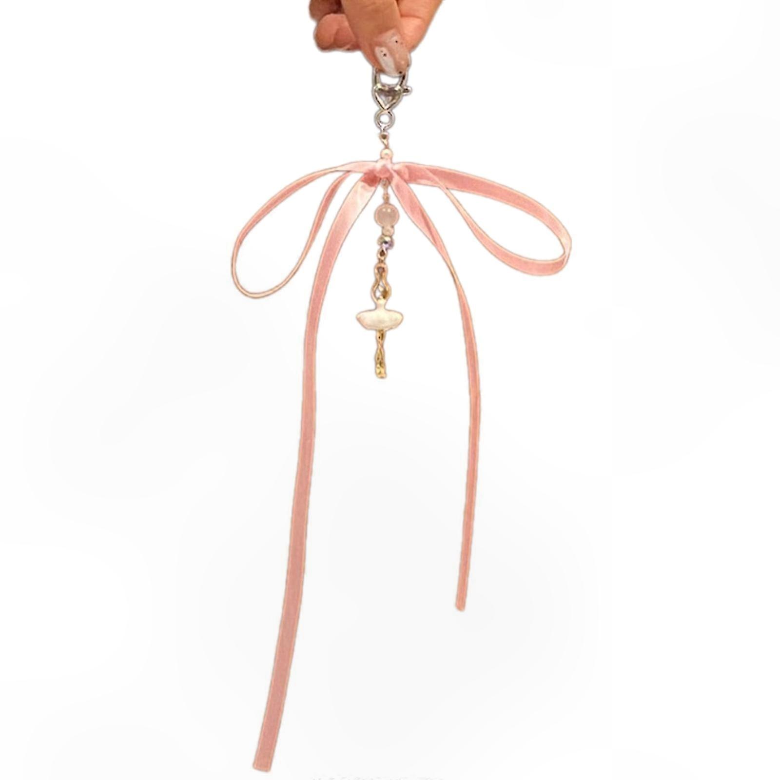 Fashion Ribbon Bowknot Bead Pendant Phone Straps Lanyard Pocket Keychain Strap Backpack Charm Car Key Decoration Chain