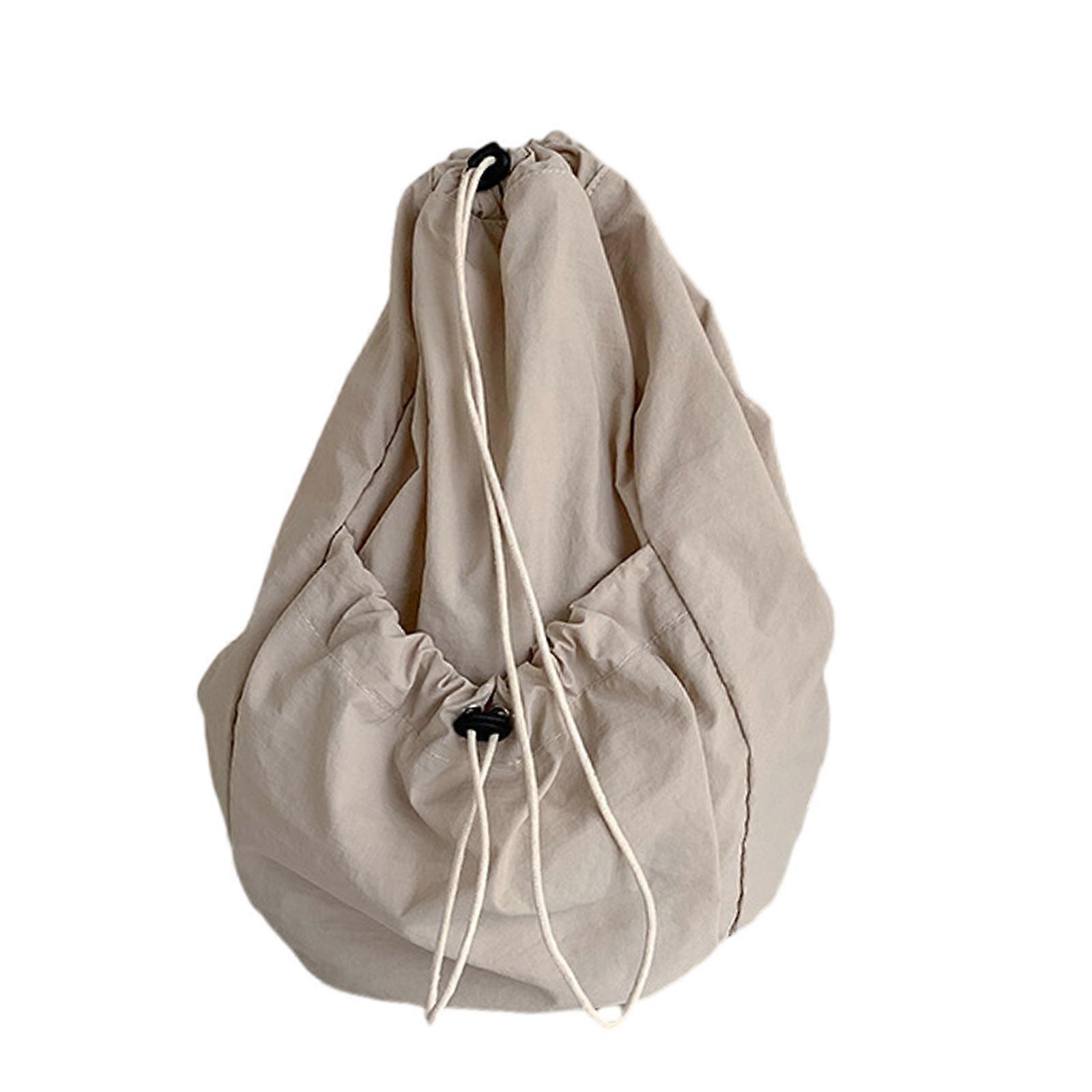 Drawstring Ruched Shoulder Bag for Women Girl Nylon Hobo Bag Lady Purse Fashion Simple Korean Style Crossbody Bags Khaki