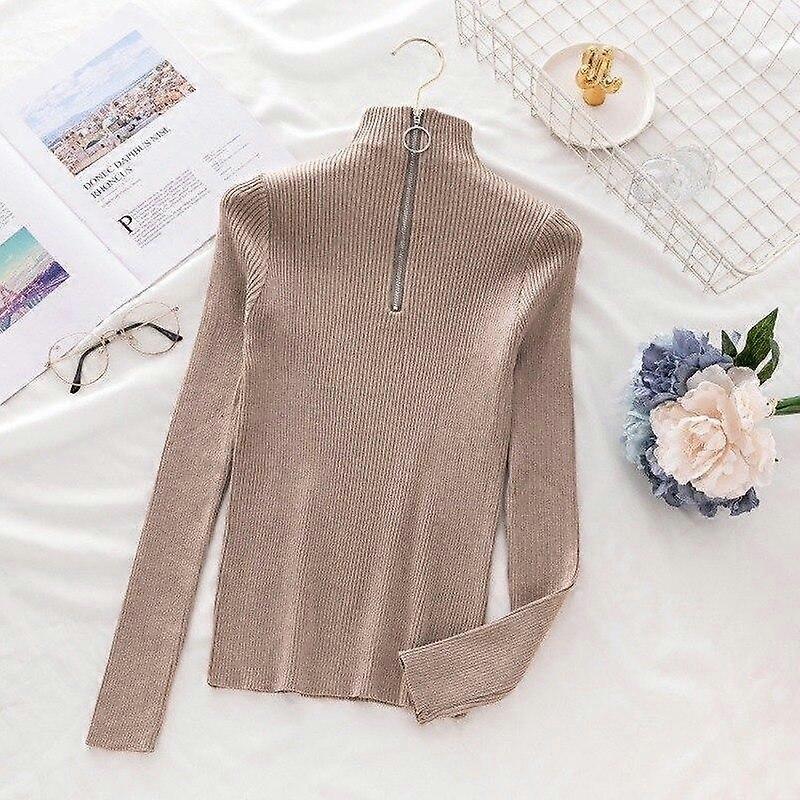 Korean Solid Zipper Pullover Sweater Knitted Autumn And Winter Long Sleeve Pull Femme Slim Jumper Women Sweaters Tops 17113