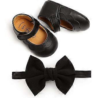 Baby Girls Mary Jane Flats with Bowknot Headband Infant Princess Dress Soft Sole Crib Shoes Non-Slip for Toddler First Walkers