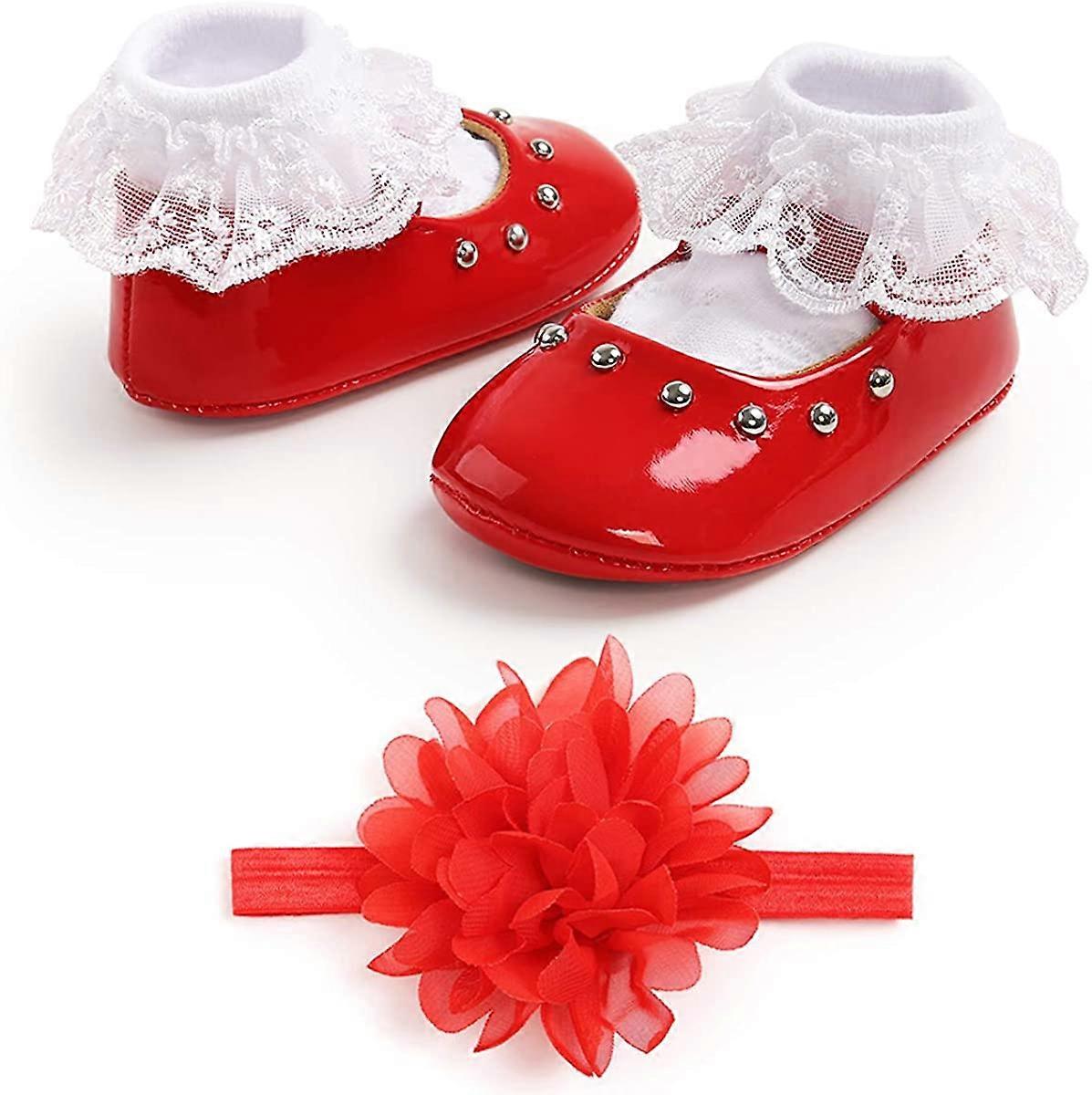 Baby Girls Mary Jane Flats Dress Shoes Soft Sole No-Slip Infant Mary Jane Princess Shoes Wedding Dress Shoes Crib Shoes Toddler Shoes