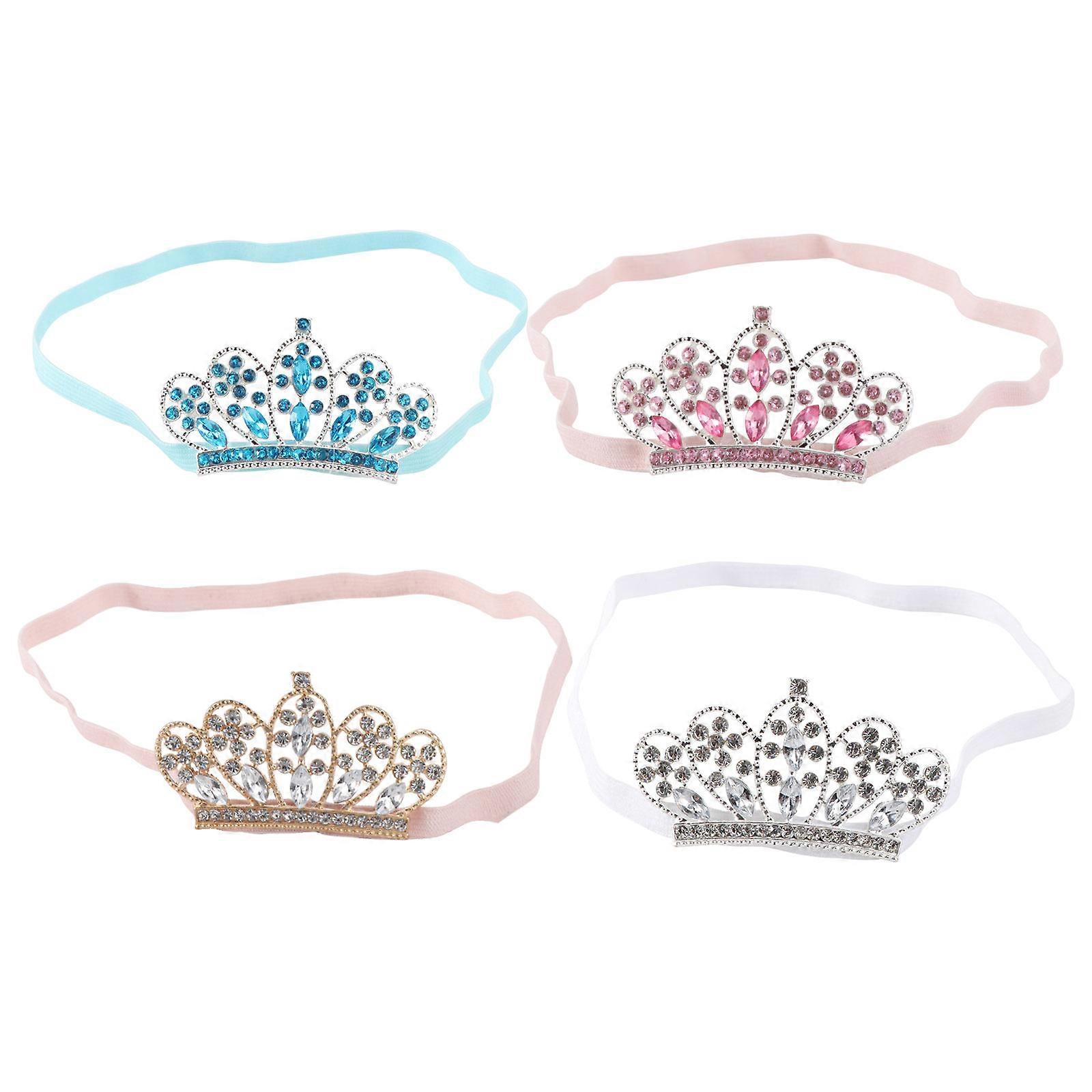 Baby Girl Headbands Chic Details Crown Headdress For Kids Banquet 5x3cm Rhinestone 4Pcs