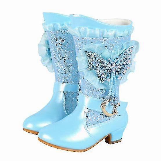Girls Glitter Boots Warm Lined Long Boots Rhinestones Bow School Shoes