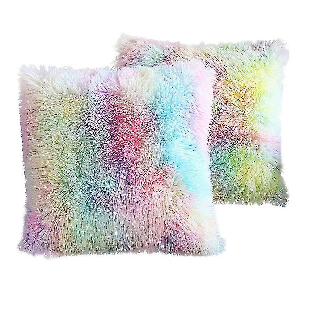 Girl Room Decor Fluffy Pillows for Bed Soft Faux Fur Throw Pillow Cover Rainbow Pink Sofa Cute Decorative Cushion Case Set of 2pcs Square 16x16 Plush