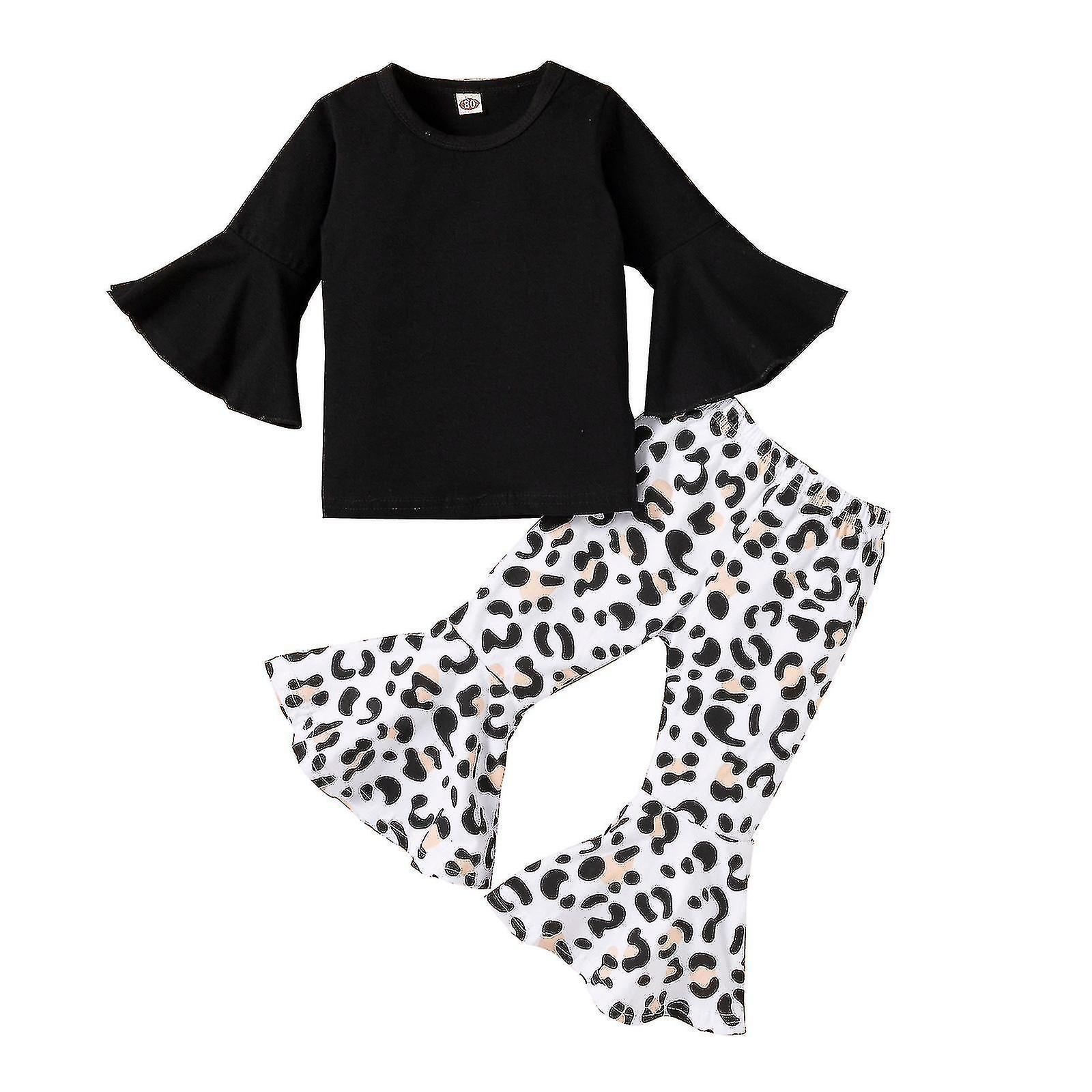 Baby Girl Clothes Summer Outfit Leopard Print Bell Bottoms Pant Flared Ruffle Sleeve Romper