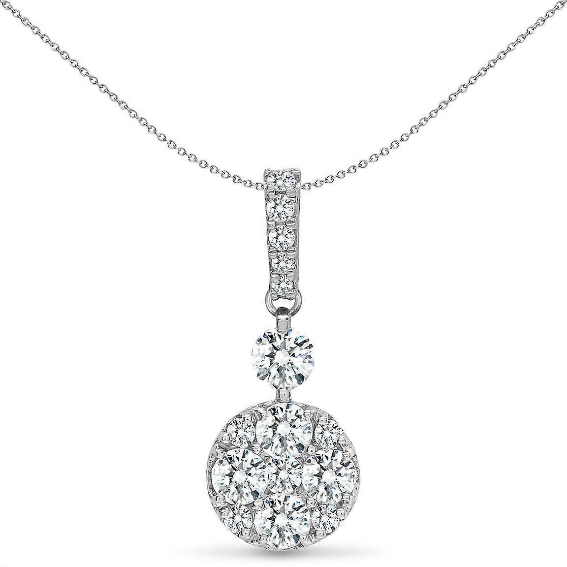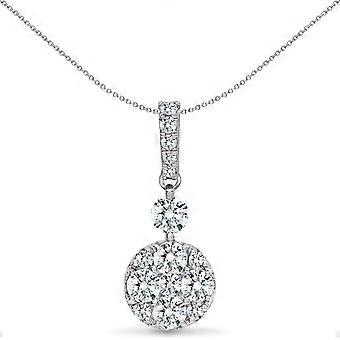 Jewelco London Solid 18ct White Gold Pave Set Round G SI 0.47ct Diamond Disco Cluster Drop Pendant