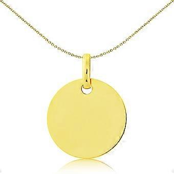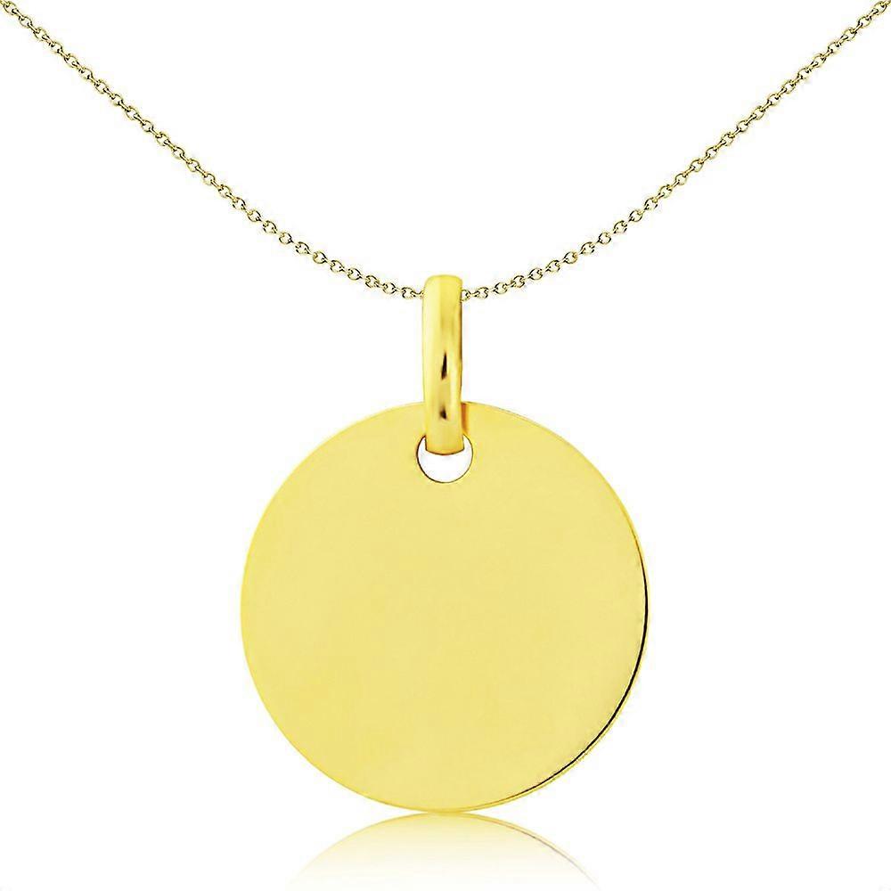 Jewelco London Solid 9ct Yellow Gold Flat Round Disc Dog Tag Medallion Pendant - 13mm