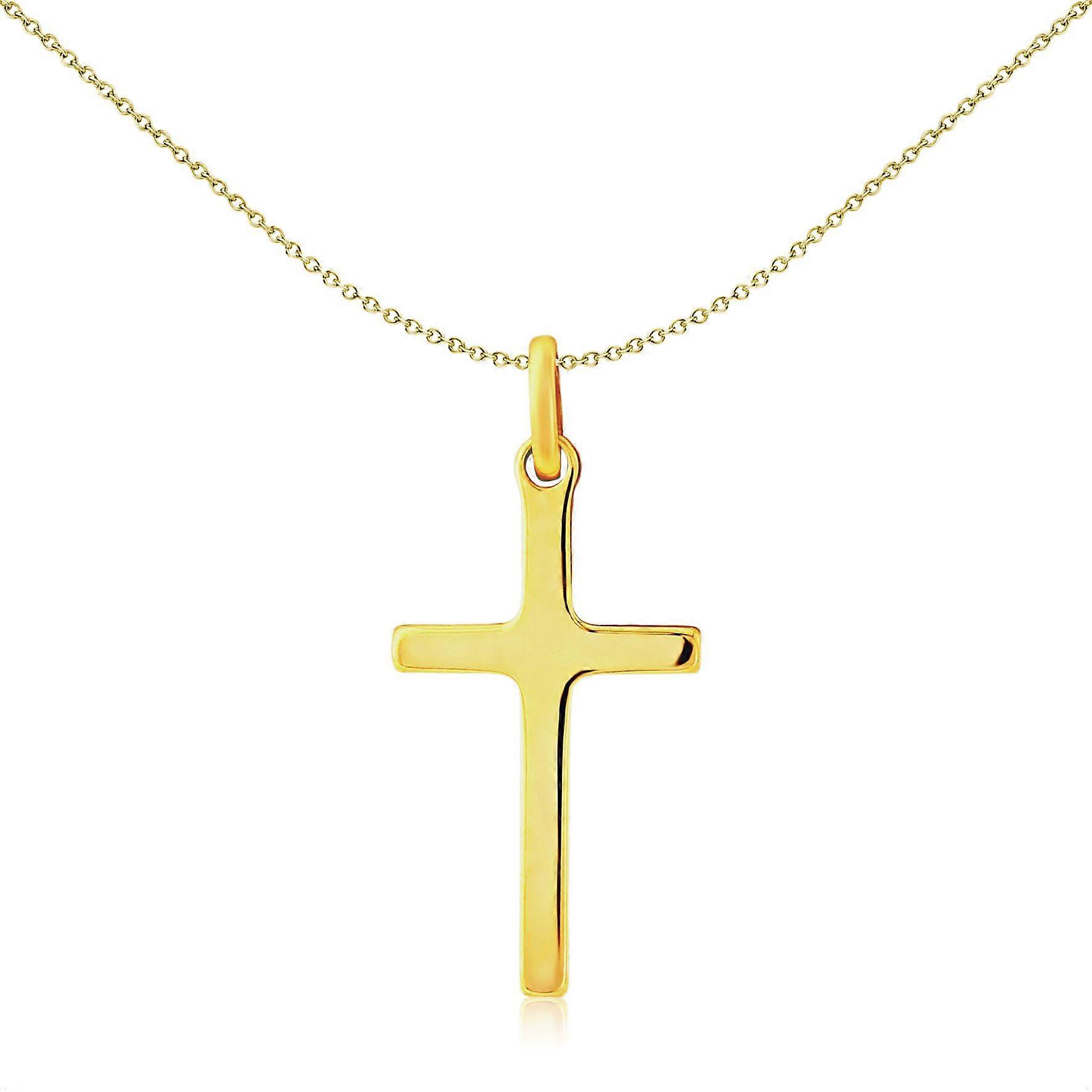 Jewelco London Solid 9ct Yellow Gold 2mm Thick Polished Cross Charm Pendant