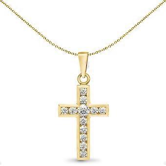 Jewelco London Ladies Solid 18ct Yellow Gold Channel Set Round G SI1 0.44ct Diamond Flat Cross Pendant