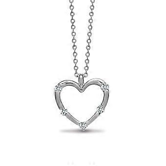Jewelco London Ladies Solid 18ct White Gold Channel Set Round G SI1 0.15ct Diamond Love Heart Charm Necklace