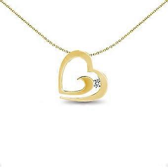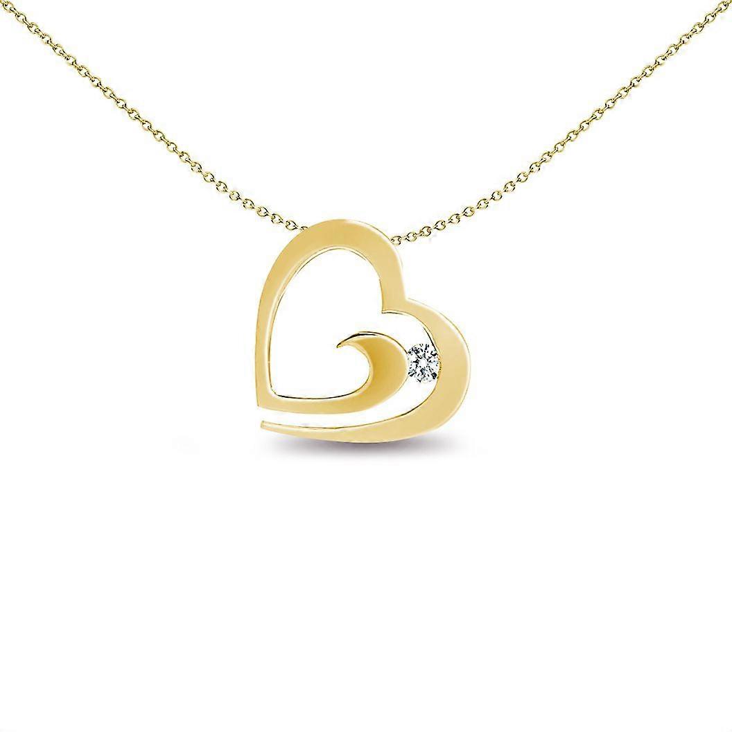 Jewelco London Ladies Solid 9ct Yellow Gold Channel Set Round H I2 0.04ct Diamond Love Heart Charm Pendant